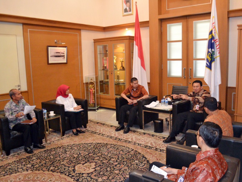 Pengurus Komite Olahraga Nasional Indonesia (KONI) Provinsi DKI Jakarta menemui Gubernur DKI Jakarta, Basuki Tjahaja Purnama di Balai Kota DKI Jakarta, Jumat (9/10/2015). Dalam pertemuan tersebut pengurus KONI Provinsi DKI Jakarta menyampaikan laporan terkait program-program pembinaan prestasi dalam rangka persiapan atlet menuju perhelatan PON XIX Tahun 2016. (Foto : Yopie/Beritajakarta.com)
