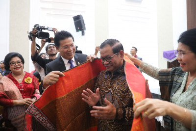 Gubernur DKI Jakarta, Pramono Anung meresmikan Gereja Huria Kristen Batak Protestan (HKBP) Ressort Pondok Kelapa, Duren Sawit, Jakarta Timur, Minggu (14/12). Peresmian gereja berkapasitas 300 hingga 350 jemaah ini dilakukan dengan penandatanganan prasasti sebagai tanda digunakannya Gereja HKBP Ressort Pondok Kelapa sebagai tempat ibadah yang permanen.