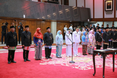 Gubernur DKI Jakarta, Pramono Anung melantik 11 pejabat Pimpinan Tinggi Pratama di lingkungan Pemerintah Provinsi (Pemprov) DKI Jakarta di Balai Agung, Balai Kota DKI Jakarta, Rabu (17/12). Pelantikan ini merupakan proses rotasi jabatan berdasarkan sistem meritokrasi dan capaian kinerja yang telah diraih dengan proses yang dilakukan secara terbuka dan transparan.