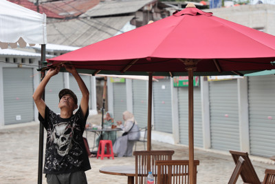 Sejumlah pedagang mulai menempati Sentra Fauna dan Kuliner Lenteng Agung di Jalan Raya Lenteng Agung, Jagakarsa, Jakarta Selatan, Kamis (18/12). Suku Dinas Perindustrian Perdagangan Koperasi Usaha Kecil dan Menengah (Sudin PPKUKM) Jakarta Selatan menyatakan sebanyak 22 dari 51 UMKM umum yang mendaftar lolos tahap kurasi untuk bisa menempati Sentra Fauna dan Kuliner Lenteng Agung.