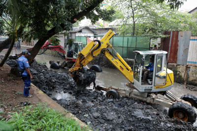 Sudin SDA Jaksel Keruk Lumpur Saluran Phb Pulo Pasar Minggu
