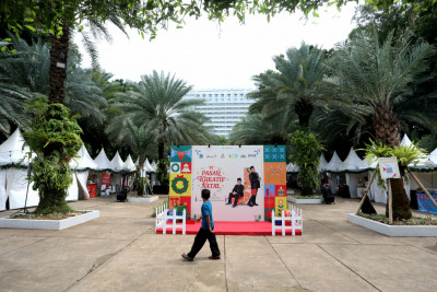 Pemerintah Provinsi DKI Jakarta melalui Dinas Pariwisata dan Ekonomi Kreatif (Disparekraf) menggelar Pasar Kreatif Natal 2025 di Taman Lapangan Banteng, Pasar Baru, Sawah Besar, Jakarta Pusat, Sabtu (20/12). Kegiatan yang berlangsung selama dua hari yakni 20–21 Desember 2025 dengan menghadirkan 40 Usaha Mikro, Kecil dan Menengah (UMKM) yang menawarkan beragam produk lokal, seperti kerajinan tangan, kuliner, hingga suvenir bertema Natal.