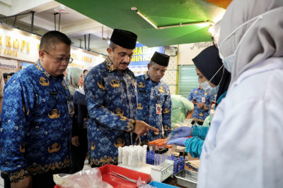 Wali Kota Jakarta Selatan, Muhammad Anwar lakukan monitoring keamanan dan ketersediaan pangan jelang Natal dan Tahun Baru (Nataru) di Pasar Santa, Petogogan, Kebayoran Baru, Jakarta Selatan, Senin (22/12). Kegiatan ini dilakukan guna memastikan ketersediaan dan stabilitas harga bahan pangan jelang Nataru aman sekaligus memastikan bahan pangan yang tersedia terbebas dari zat berbahaya.