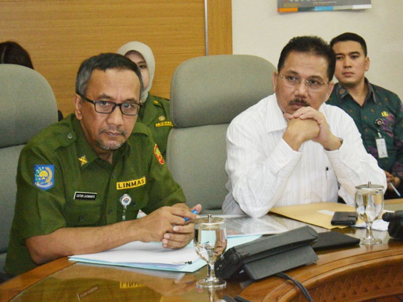 Delegasi dari Kantor Kedutaan Besar Republik Indonesia untuk Singapura menemui Gubernur DKI Jakarta, Basuki Tjahaja Purnama di Balai Kota DKI Jakarta, Senin (12/10/2015). Dalam kesempatan tersebut, delegasi yang datang menyampaikan perkembangan persiapan kunjungan kerja Basuki ke Singapura, utamanya untuk mempelajari langsung sistem transportasi.(Foto: Yopie / Beritajakarta.com)