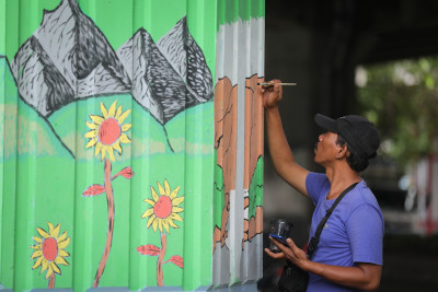 Petugas PPSU Gabungan Lukis Mural di Jalan DI Panjaitan