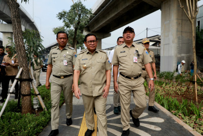 Gubernur DKI Jakarta, Pramono Anung melaksanakan kegiatan peninjauan Taman Gapura Muka Cakung, Cakung Barat, Jakarta Timur, Selasa (6/1). Taman Gapura Muka Cakung dibangun dibawah ruas kolong jalan tol Pulogebang - Kelapa Gading dengan luas 1.500 meter persegi yang mengusung konsep ecological space dan urban space yang ramah bagi anak dan penyandang disabilitas.