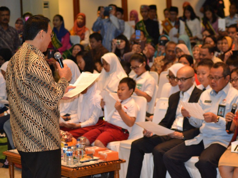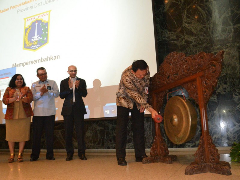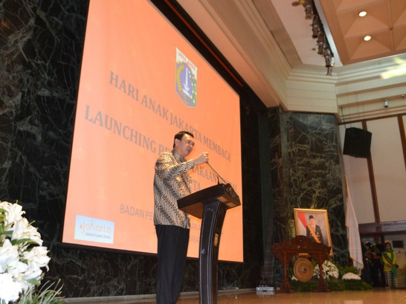 Gubernur DKI Jakarta, Basuki Tjahaja Purnama meresmikan aplikasi perpustakaan digital pertama di Indonesia yang diberi nama i-Jakarta. Prosesi peresmian berlangsung di Balai Kota DKI Jakarta, Jalan Medan Merdeka Selatan, Gambir, Jakarta Pusat, Selasa (13/10/2015). Perpustkaan digital i-Jakarta dilengkapi menu untuk membaca buku digital (ebook-reader) dan fitur media sosial yang dapat diakses melalui berbagai perangkat keras (multi device) maupun perangkat lunak (multi platform), seperti android, iOS, dan Windows.(Foto: Yopie / Beritajakarta.com)