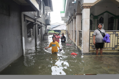 Wakil Gubernur DKI Jakarta, Rano Karno meninjau dua lokasi pengungsian warga terdampak banjir di Rusunawa KS Tubun, Palmerah dan Masjid Alfudhola, Cengkareng, Jakarta Barat, Jumat (23/1). Kunjungan Rano Karno tersebut untuk memantau situasi di lapangan serta memastikan semua kebutuhan warga terpenuhi dengan baik.