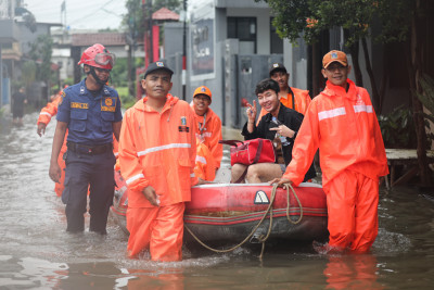 Petugas Gabungan Tangani Banjir di Pondok Bambu