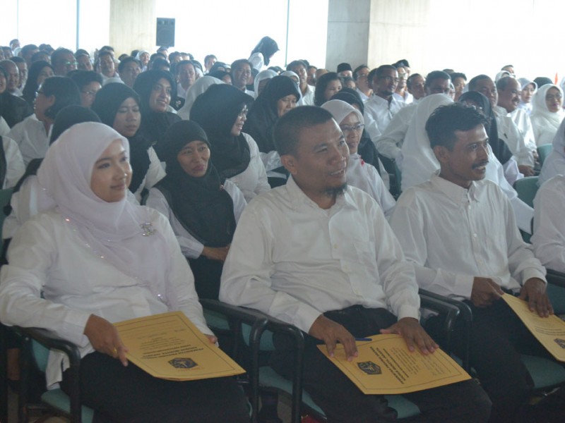 Gubernur DKI Jakarta, Basuki Tjaha ja Purnama secara simbolis menyerahkan Surat Keputusan (SK) pengangkatan 292 tenaga honorer menjadi Calon Pegawai Negeri Sipil (CPNS). Penyerahan SK CPNS dilakukan di Balai Kota DKI Jakarta, Kamis (15/10/2015).(Foto: Yopie / Beritajakarta.com)