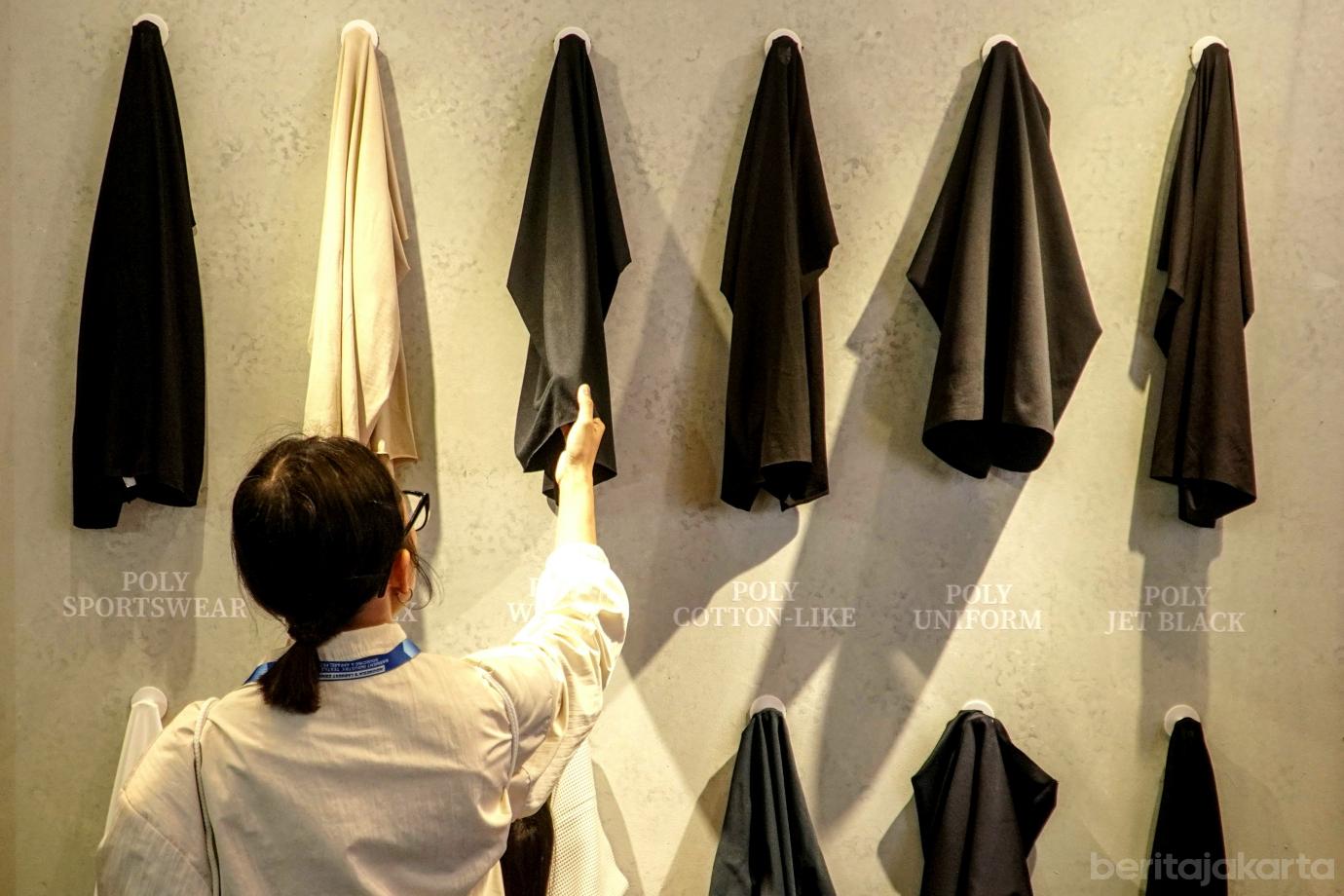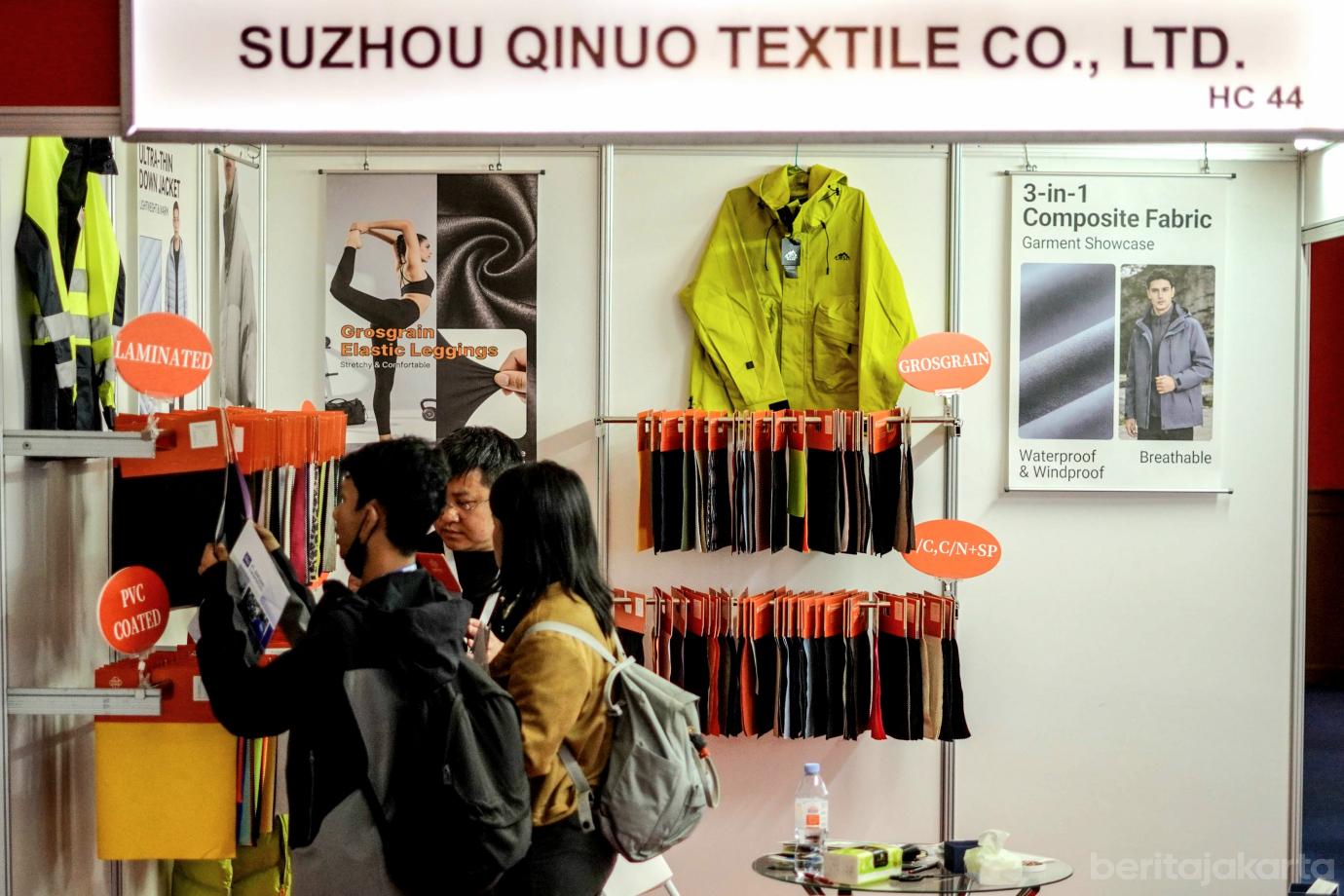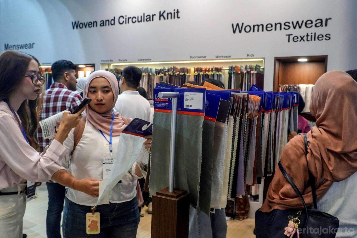 Pengunjung melihat produk kain dalam pameran Indo Intertex Inatex 2026 di JIExpo Kemayoran, Jakarta Pusat, Jumat, (17/4). Pameran internasional yang menampilkan teknologi permesinan tekstil, garmen, bahan ramah lingkungan, serta solusi AI, yang menjadi ajang pertemuan bisnis penting bagi industri tekstil dan produk tekstil nasional juga internasional.