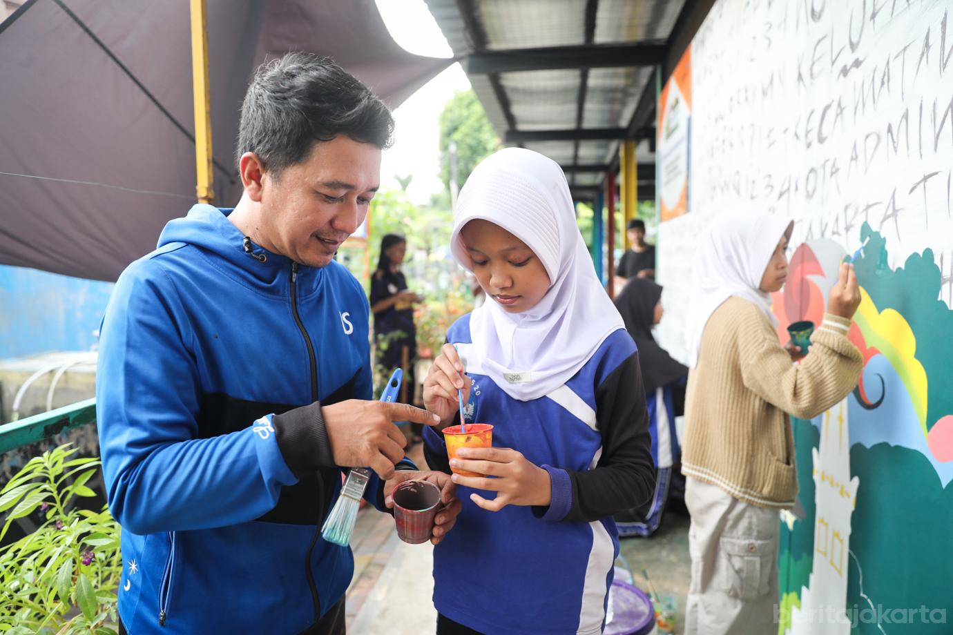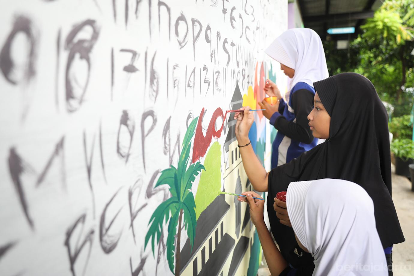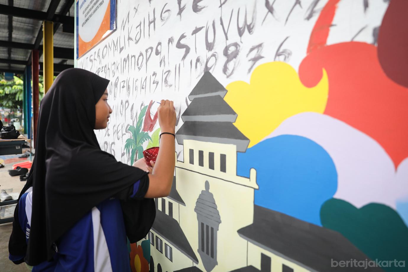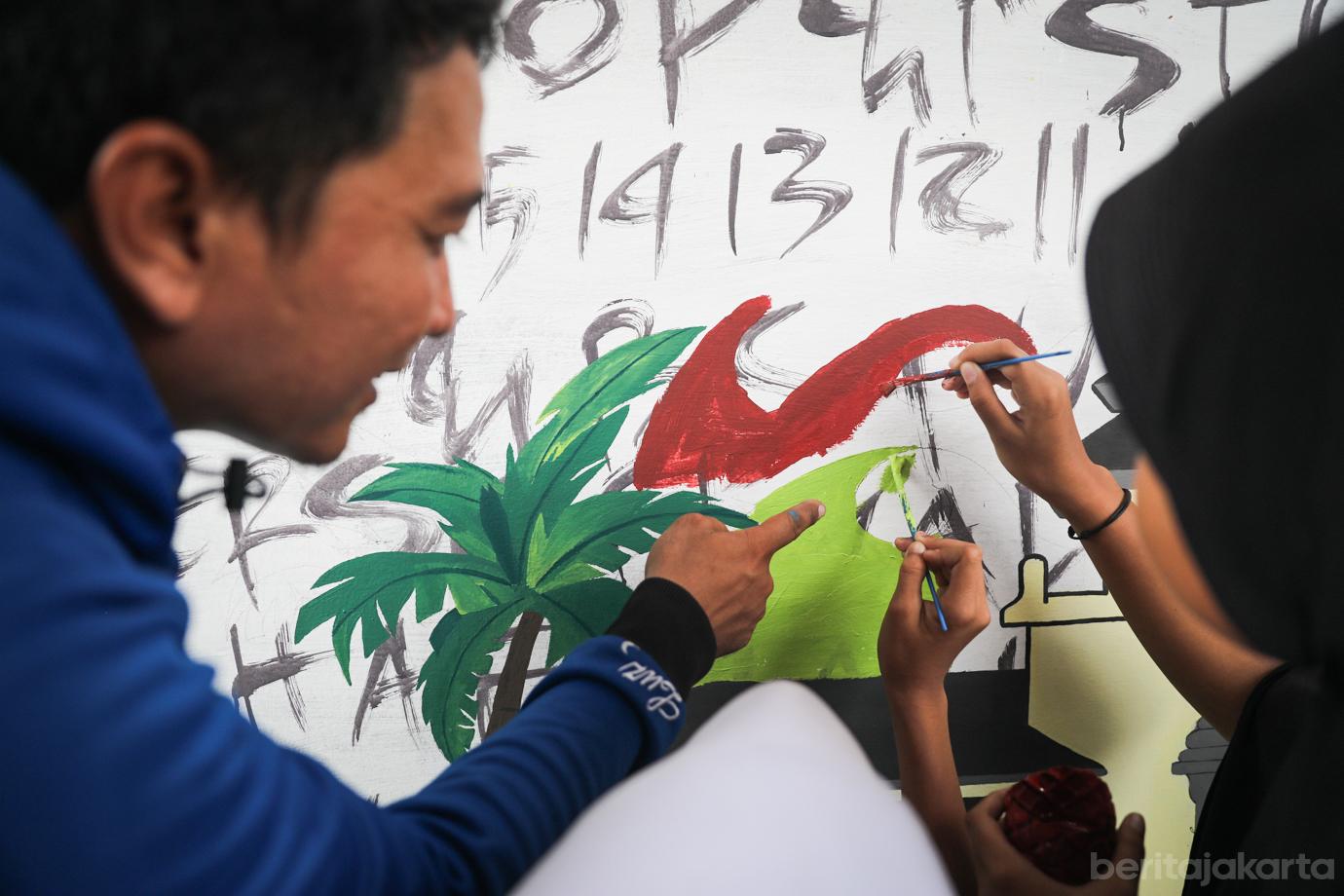 RPTRA Utakase Berseri Libatkan Anak-anak untuk Menggambar Mural