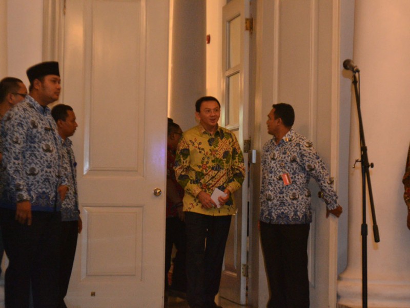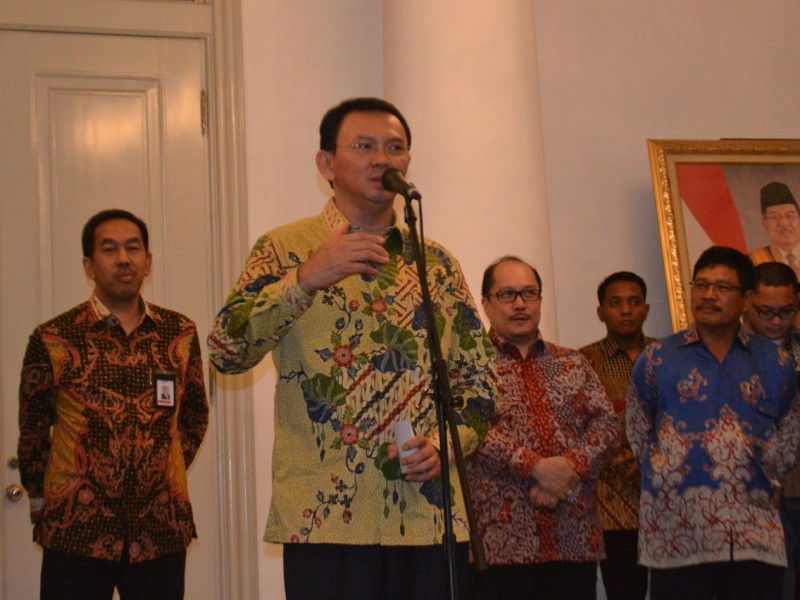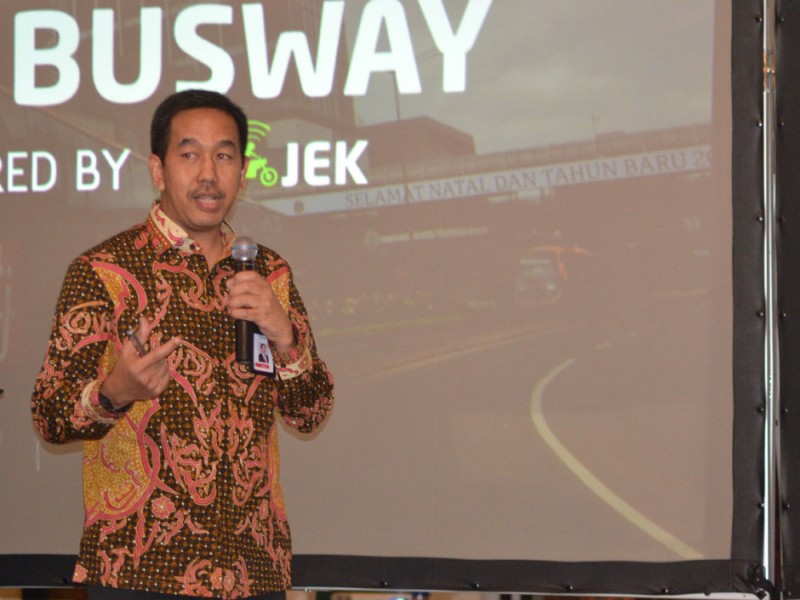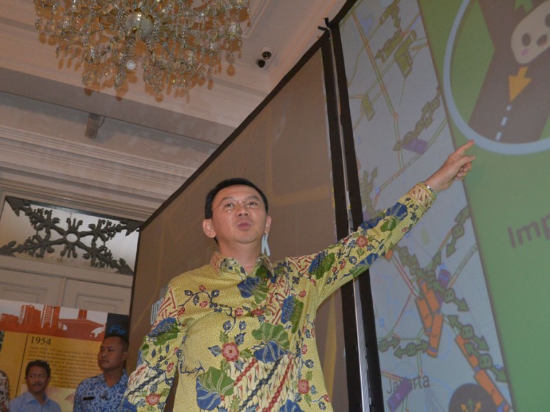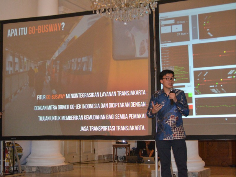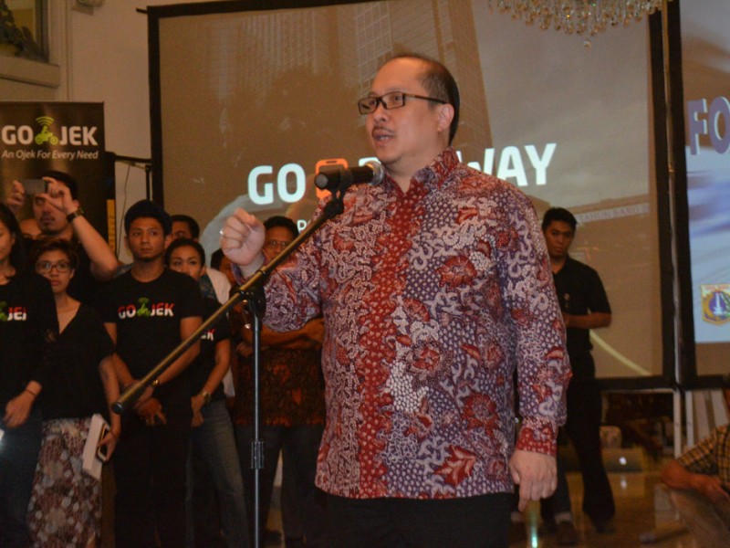 Gubernur DKI Jakarta, Basuki Tjahaja Purnama meresmikan sistem informasi terintegrasi antara PT Transportasi Jakarta (Trnsjakart) dengan PT Telkom serta aplikasi Gojek dan Qlue di Balai Kota DKI Jakarta, Rabu (28/10/2015). melalui sistem aplikasi Go Busway, lokasi bus Transjakarta dapat diketahui secara real time dan waktu kedatangan bus Transjakarta di setiap halte dapat dipastikan.(Foto: Yopie / Beritajakarta.com)
