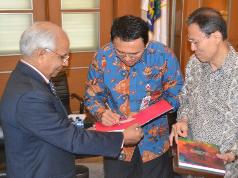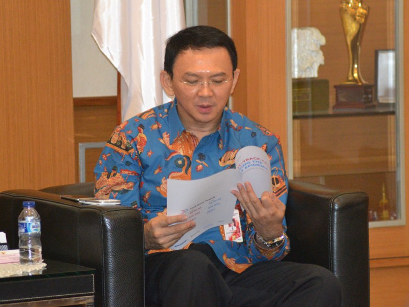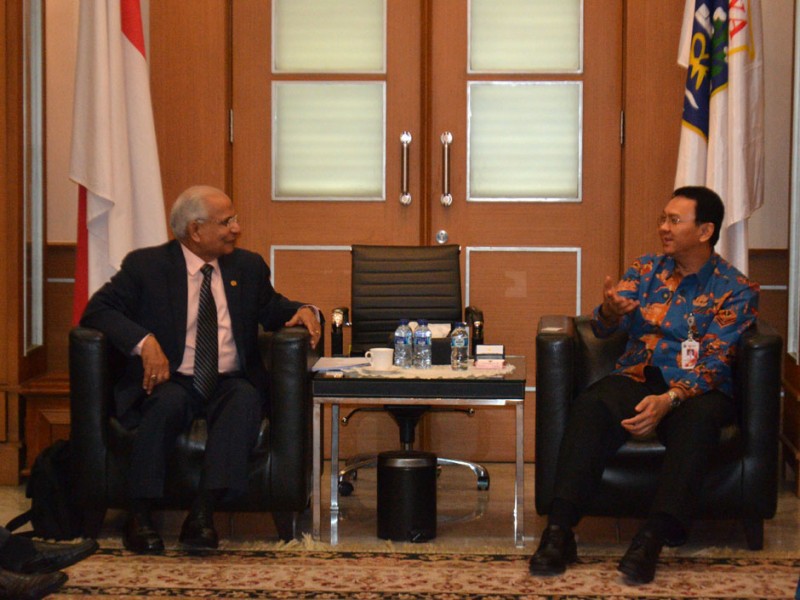 Asisten Sekretaris Umum UNAIDS, Prasada Rao bersama para delegasi menemui Gubernur DKI Jakarta, Basuki Tjahaja Purnama di Balai Kota DKI Jakarta, Kamis (29/10/2015). Dalam kesempatan tersebur Prasada Rao menyampaikan perihal Paris Declaration of Fast-Track Cities Ending the AIDS Epidemic.(Foto : Yopie/Beritajakarta.com)