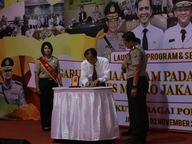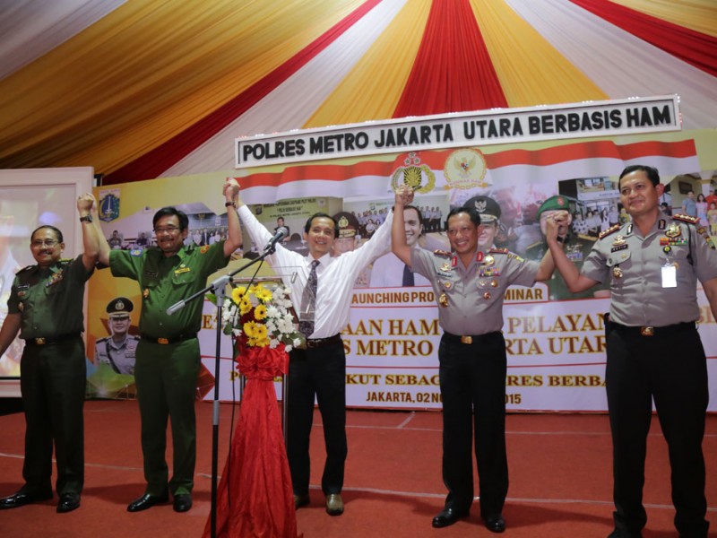 Wakil Gubernur DKI Jakarta, Djarot Saiful Hidayat menyampaikan pemikirannya terkait kesetaraan gender dalam seminar bertajuk Pengarusutamaan HAM Dalam Pelayanan Publik, di Mapolres Metro Jakarta Utara, Senin (2/11/2015). Kegiatan ini bertujuan untuk memberikan pelayanan yang lebih baik kepada masyarakat dengan mengormati hak-hak kaum perempuan.(Foto: Reza / Beritajakarta.com)