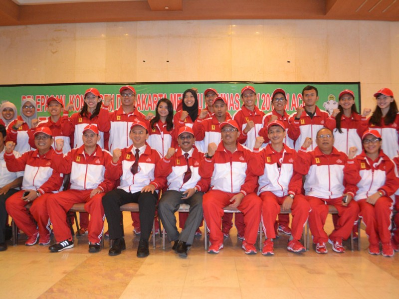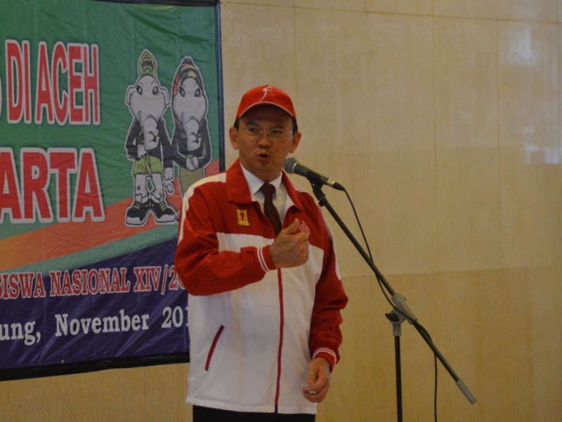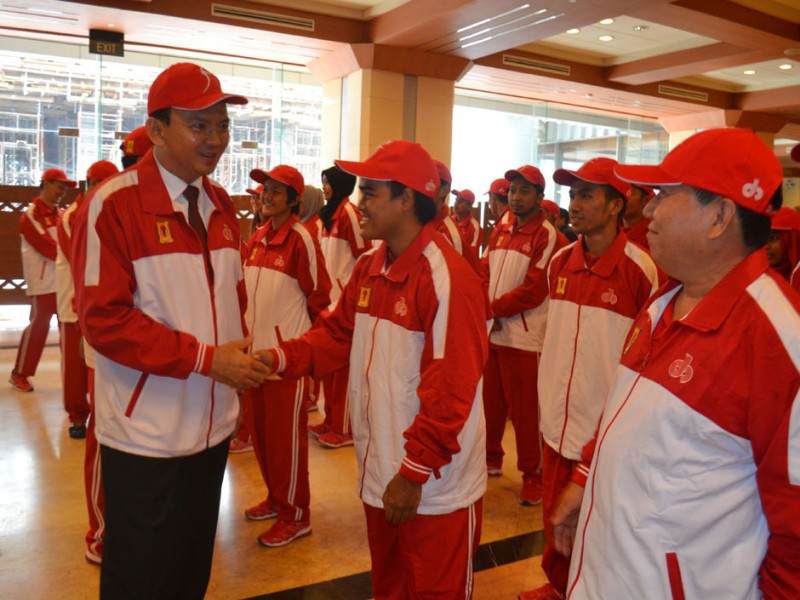 Gubernur DKI Jakarta, Basuki Tjahaja Purnama melepas Kontingen Provinsi DKI Jakarta menuju Pekan Olahraga Mahasiswa Nasional (POMNAS) XIV Tahun 2015 yang akan di selenggarakan di Provinsi Aceh, pada tanggal 14 - 21 November 2015. Balai Pertemuan Blok G Balai Kota Jakarta, Jakarta Pusat, Selasa (10/11/2015) (Foto: Yopie / Beritajakarta.com)