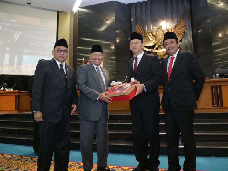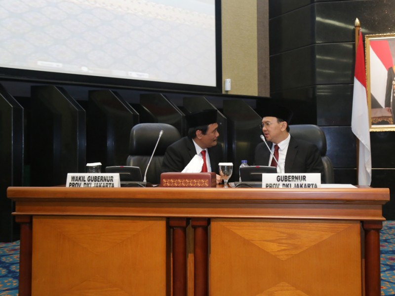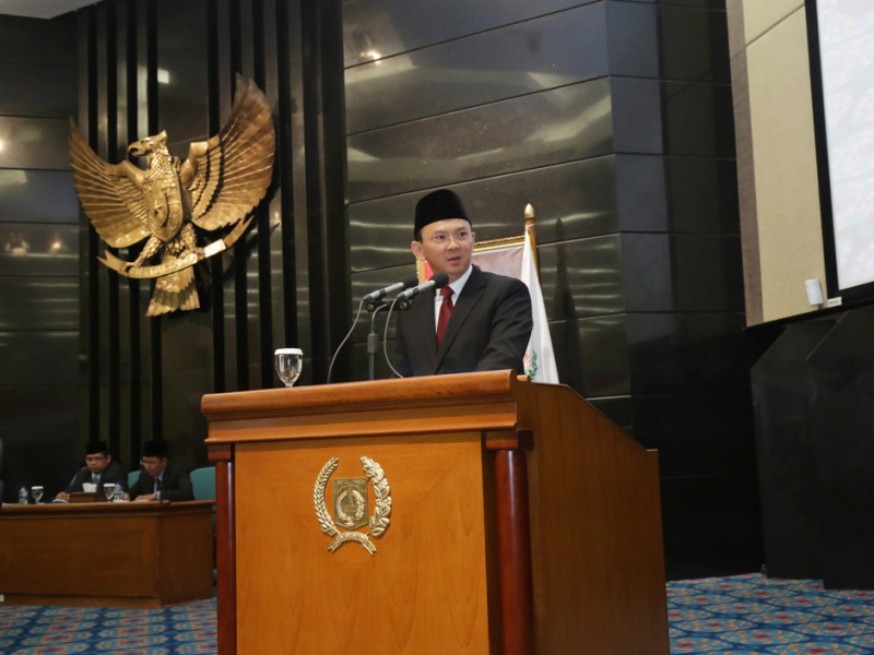 Gubernur DKI Jakarta, Basuki Tjahaja Purnama menyampaikan penjelasan terkait Rancangan Peraturan Daerah (Raperda) Tentang Kepemudaan dan Keolahragaan di Gedung DPRD DKI Jakarta, Jalan kebon Sirih, Gambir, Jakarta Pusat, Selasa (10/11/2015) . Turut hadir dalam rapat Paripurna ini Wakil Gubernur DKI Jakarta, Djarot Saiful Hidayat. (Foto: Reza/beritajakarta.com)