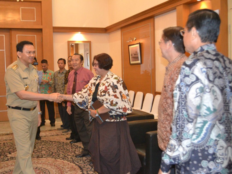 Komunitas Lanjut Usia Keuskupan Agung Jakarta menemui Gubernur DKI Jakarta, Basuki Tjahaja Purnama di Balai Kota DKI Jakarta, Rabu (11/11/2015). Dalam kesempatan tersebut Komunitas Lanjut Usia Keuskupan Agung Jakarta menyampaikan komitmennya untuk berperan serta dalam peringatan Hari Kesehatan Nasional dan kegiatan sosial lainnya.(Foto: Yopie / Beritajakarta.com)