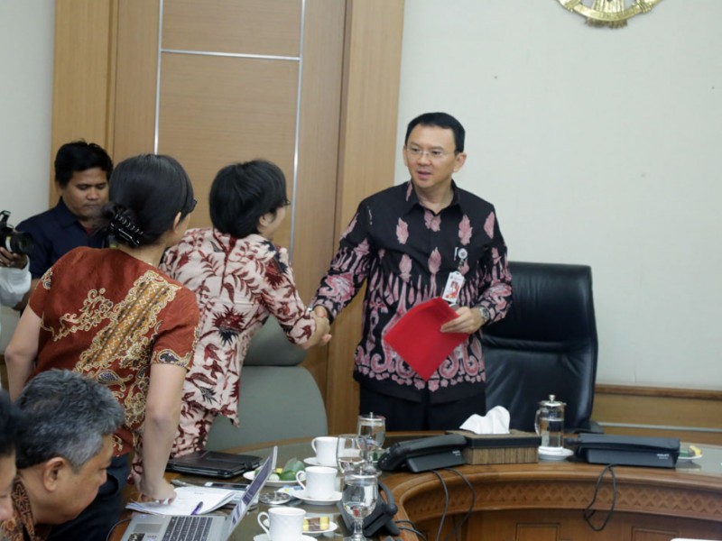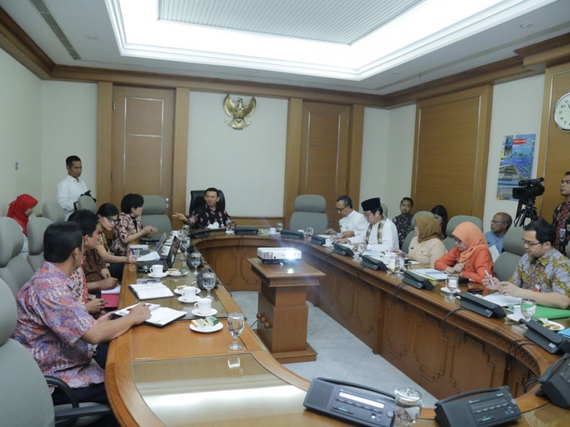 Gubernur DKI Jakarta, Basuki Tjahaja Purnama menerima Direktur Utama PD Dharma Jaya di Balai Kota DKI Jakarta, Kamis (12/11/2015). Rapat ini membahas Master Plan PD Dharma Jaya.(Foto: Reza/beritajakarta.com)