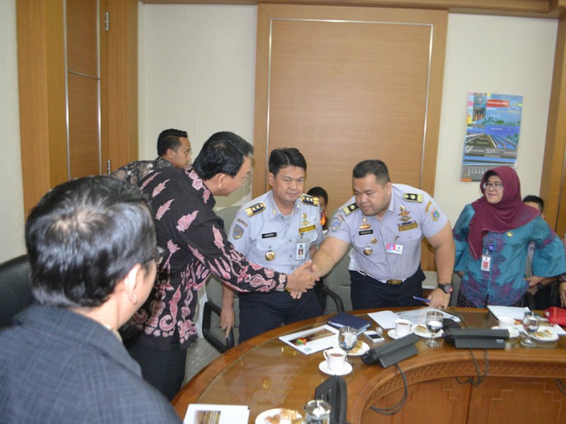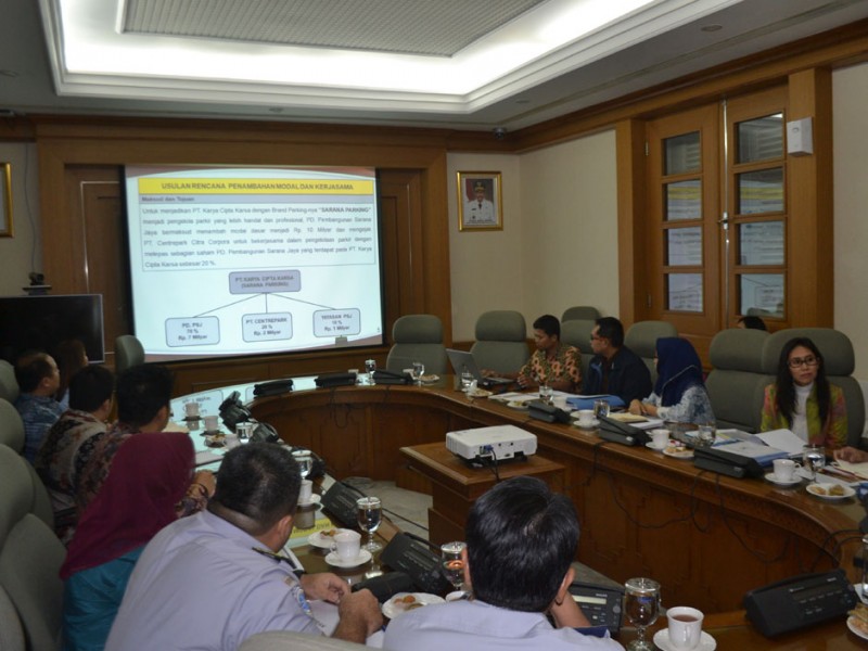 Gubernur DKI Jakarta, Basuki Tjahaja Purnama menerima PD Pembangunan Sarana Jaya perihal usulan rencana penambahan modal dan kerjasama dalam pengelolaan parkir dengan PT Centrepark Citra Corpora, kerjasama ini guna mengembangkan brand parking \\\"Sarana Parking\\\" yang sudah dimiliki PD Pembangunan Sarana Jaya untuk menjadi lebih handal dan Profesional. Balai Kota Jakarta, Jakarta Pusat, Kamis (12/11/2015).(Foto: Yopie / Beritajakarta.com)