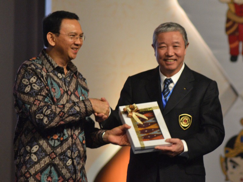 Gubernur DKI Jakarta, Basuki Tjahaja Purnama menghadiri sekaligus memberikan sambutan dalam Welcome dinner Pembukaan Kejuaraan Dunia Wushu ke-XIII Tahun 2015 yang akan berlangsung pada 14-18 November 2015. Kejuaraan Dunia Wushu 2015 diikuti 82 negara dan nantinya akan ada 904 atlet yang berpartisipasi. Jakarta Convention Center, Assembly Hall, Jl. Gatot Subroto, Jakarta Pusat, Jumat (13/11/2015). (Foto: Yopie/beritajakarta.com)