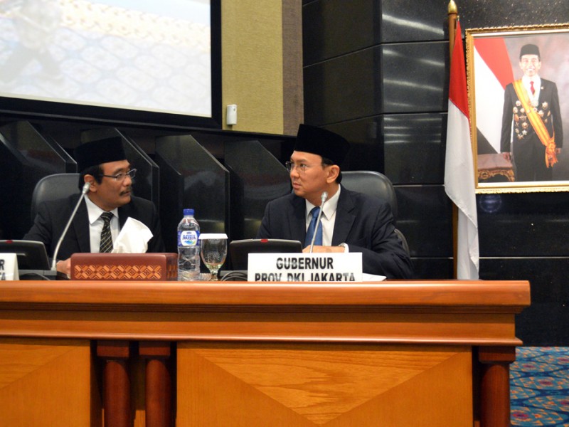 Gubernur Provinsi DKI Jakarta, Basuki Tjahaja Purnama menghadiri Rapat Paripurna DPRD Provinsi DKI Jakarta di Gedung DPRD DKI Jakarta, Jalan Kebon Sirih, Gambir, Jakarta Pusat, Senin (16/11/2015). Rapat Paripurna yang juga dihadiri Wakil Gubernur DKI Jakarta, Djarot Saiful Hidayat ini beragendakan Penyampaian Jawaban Gubernur atas Pandangan Umum Fraksi-Fraksi terhadap Raperda tentang Kepemudaan dan Raperda tentang Keolahragaan. (Foto : Yopie/Beritajakarta.com)
