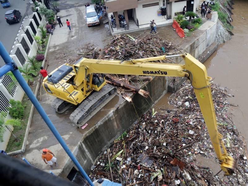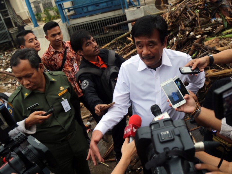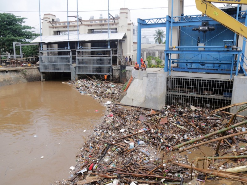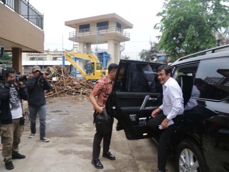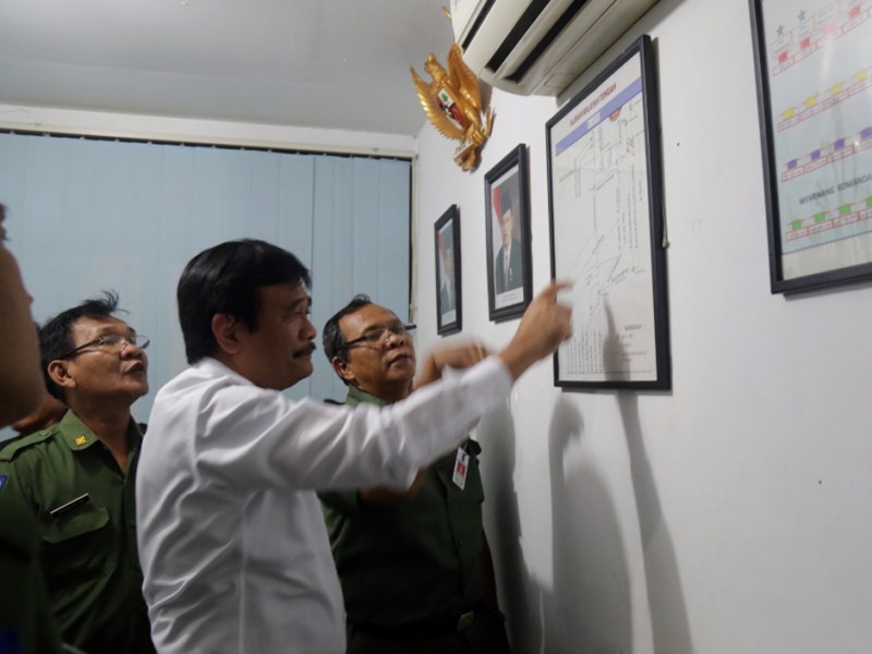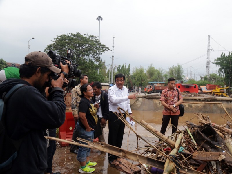 Wakil Gubernur DKI Jakarta, Djarot Saiful Hidayat meninjau Pintu Air Manggarai, Jakarta Pusat, Senin (16/11/2015). Dalam peninjauan ini Djarot menginstruksikan kepada Kepala Dinas Tata Air Provinsi DKI Jakarta, Tri Djoko Sri Margianto agar memasang jaring-jaring penangkap sampah pada beberapa titik untuk menangkap material sampah. (Foto : Reza/Beritajakarta.com)