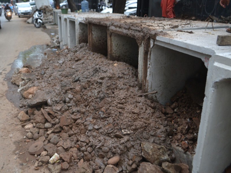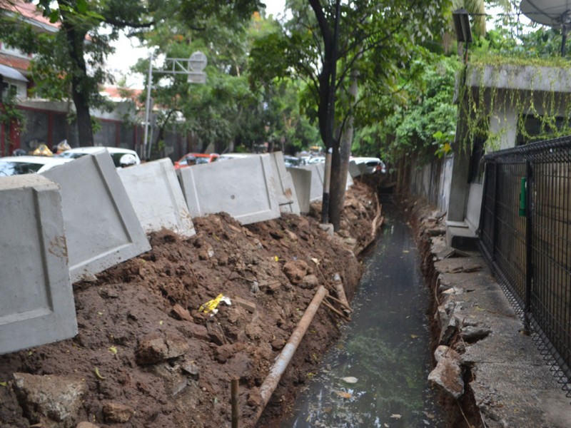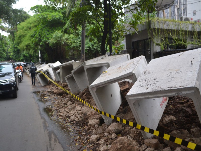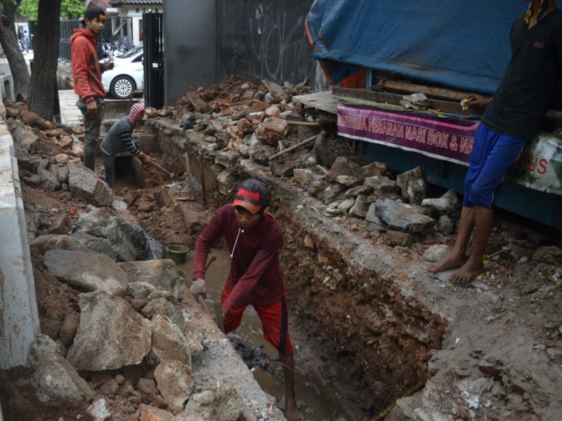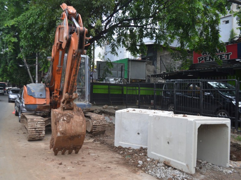Suku Dinas Pekerjaan Umum Tata Air Jakarta selatan mulai melakukan perbaikan saluran guna mencegah terjadinya genangan yang bisa menyebabkan banjir di sepanjang kawasan Jalan Bumi, Kebayoran Baru, Jakarta Selatan, Kamis (19/11/2015). Pekerjaan baru pada pembongkaran dan persiapan Box Culvert yang akan di tanam di sepanjang saluran air. (Foto : Yopie/Beritajakarta.com)