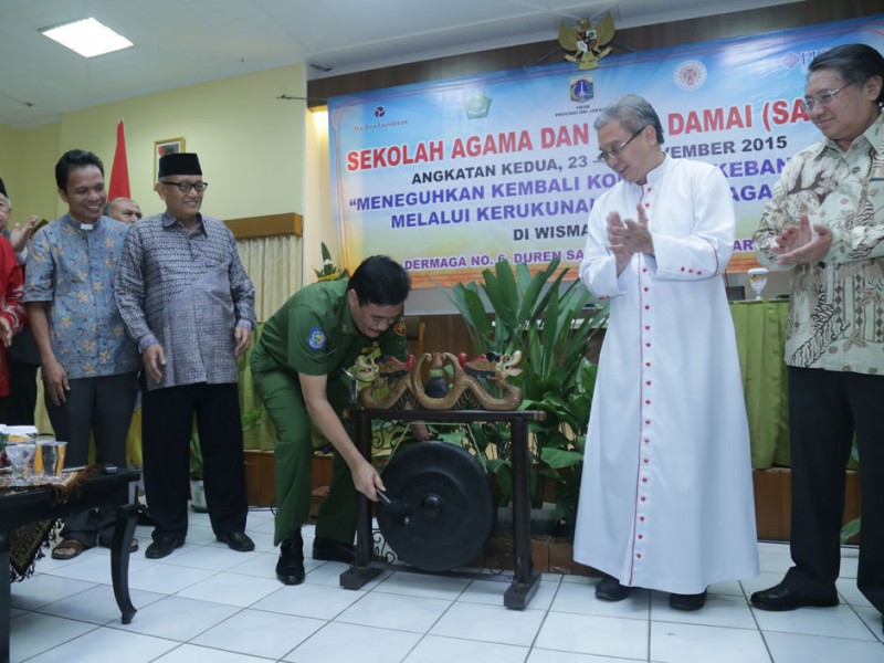Wakil Gubernur DKI Jakarta, Djarot Saiful Hidayat Membuka Kegiatan Sekolah Agama dan Bina Damai Angkatan Ke-II di Wisma Samadi, Jl.Dermaga Kav.6 Klender-Duren Sawit Jakarta Timur, Senin (23/11/2015). Dalam sambutannya Djarot mengatakan SABDA dapat mederadikalisasi pemahaman ekstrem beragama yang berpotensi menyuburkan terorisme di DKI Jakarta.(Foto: Reza / Beritajakarta.com)