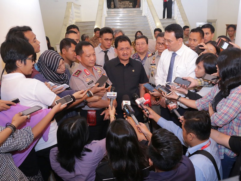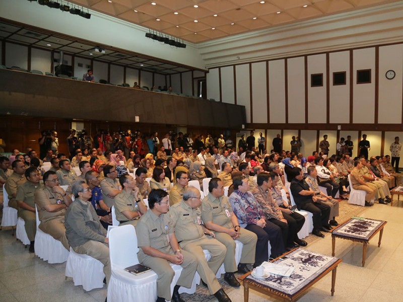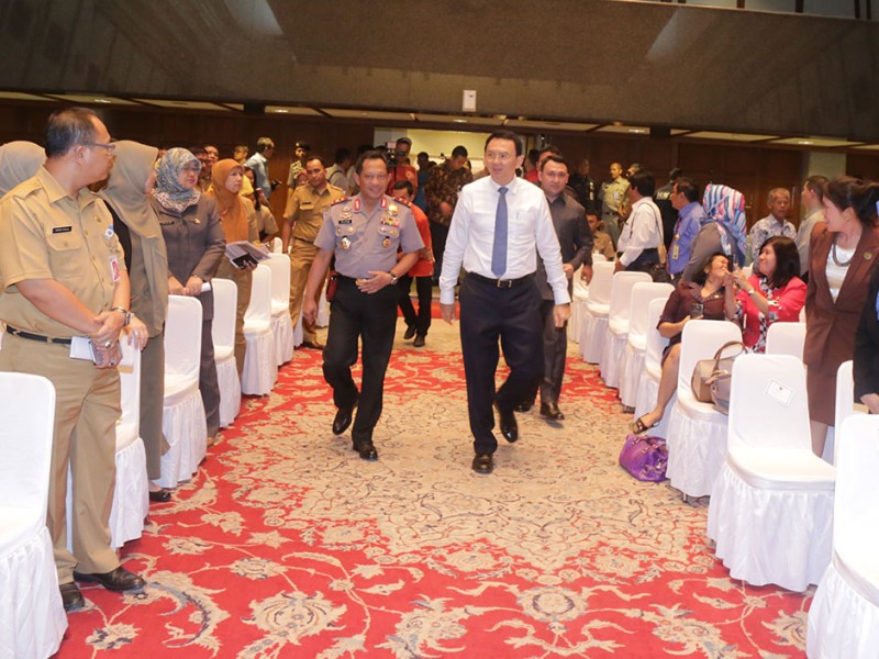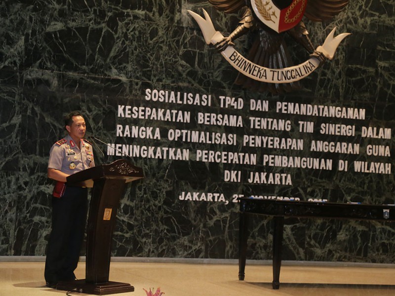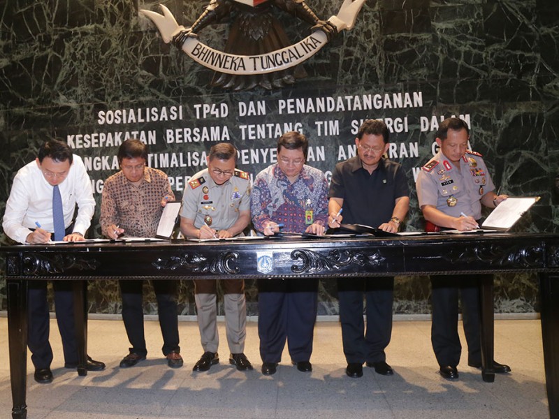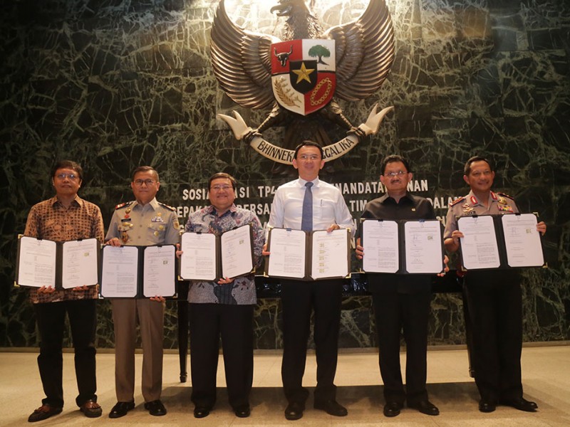 Gubernur DKI Jakarta, Basuki Tjahaja Purnama menandatangani kesepakatan bersama Tim Pengawal Pengaman Pemerintahan dan Pembangunan Daerah (TP4D) di Balai Kota DKI Jakarta, Rabu (25/11/2015). Hal ini untuk mengoptimalisasikan penyerapan anggaran guna meningkatkan percepatan pembangunan DKI Jakarta. (Foto: Reza/beritajakarta.com)