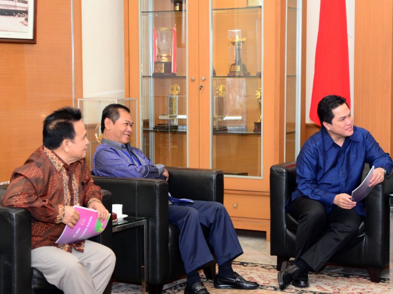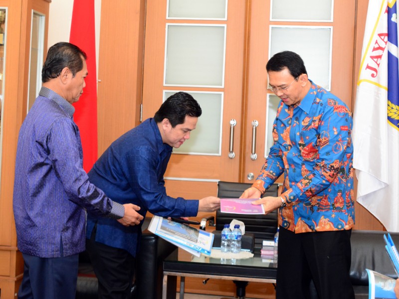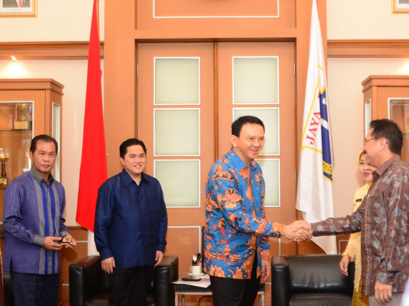 Ketua Komite Olimpiade Indonesia (KOI), Erick Thohir menemui Gubernur DKI Jakarta, Basuki Tjahaja Purnama di Balai Kota Jakarta, Jakarta Pusat, Kamis (26/11/2015). Kedatangan Erick Thohir bertujuan membicarakan kesiapan DKI Jakarta menjadi tuan rumah Asian Games di tahun 2018. (Foto : Yopie/Beritajakarta.com)