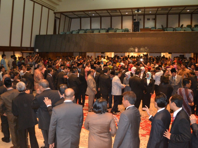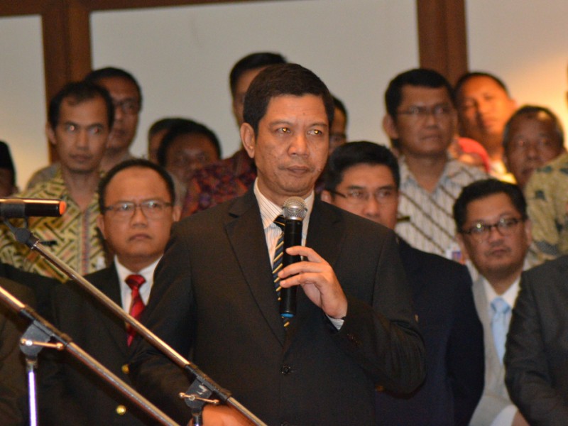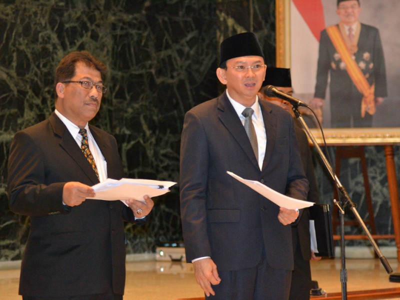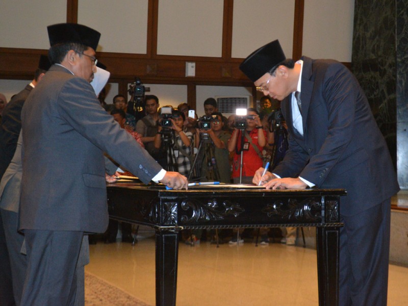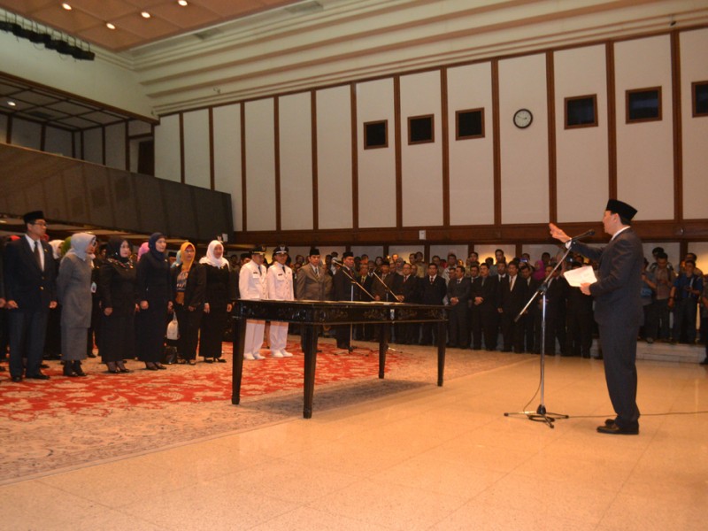Gubernur DKI Jakarta, Basuki Tjahja Purnama, melantik pejabat Eselon II, III, dan IV di Balai Kota DKI Jakarta, Jumat (27/11/2015). Dalam kesempatan tersebut Basuki melantik dua orang pejabat baru Eselon II. Mereka adalah Mery Erna Hani sebagai Kepala Inspektorat Provinsi DKI Jakarta menggantikan Lasro Marbun. Sementara, Junaedi yang sebelumnya menjabat Sekretaris Dewan Korpri Provinsi DKI Jakarta dilantik menjadi Kepala Badan Pengelola Lingkungan Hidup Daerah (BPLHD) menggantikan Andi Baso Mappapoleonro. (Foto: Yopie/beritajakarta.com)