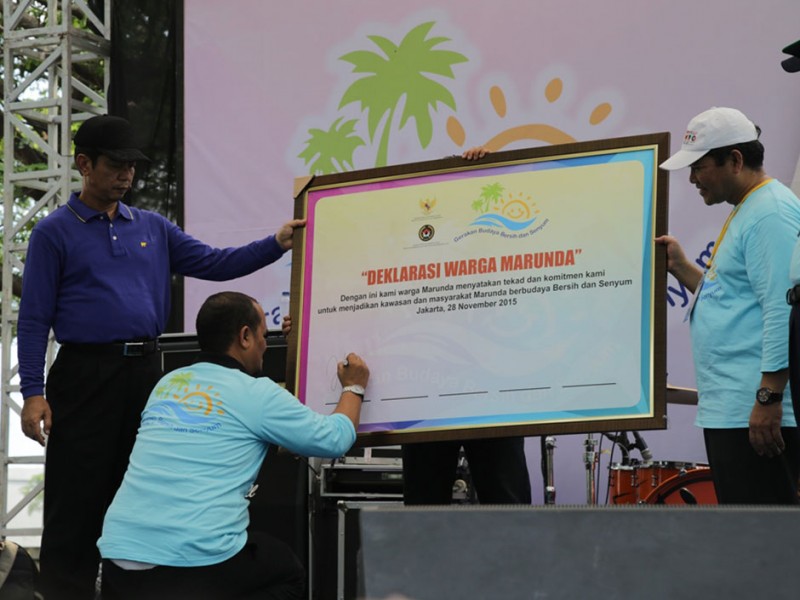 Wali Kota Jakarta Utara, Rustam Effendy menghadiri pencanangan pilot project Gerakan Budaya Bersih dan Senyum (GBS) di Rusun Marunda, Cilincing Jakarta Utara, Sabtu (28/11/2015). Dalam sambutannya Rustam berterima kasih kepada Menko Maritim dan Sumber daya karena memilih tempat di Jakarta Utara.(Foto: Reza / Beritajakarta.com)