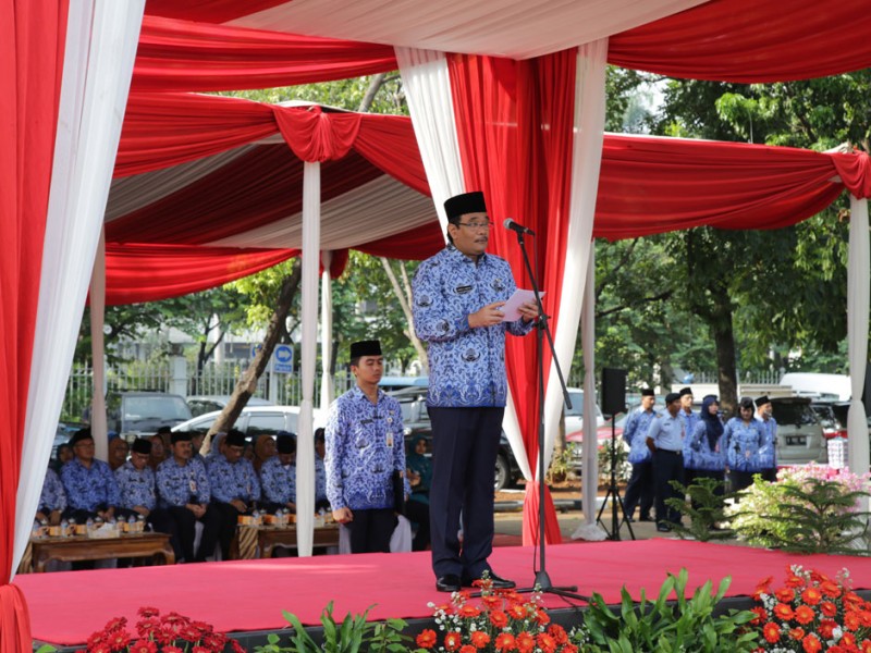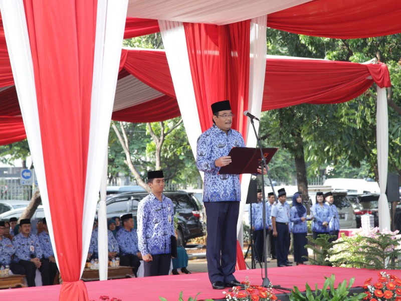 Wakil Gubernur DKI Jakarta, Djarot Saiful Hidayat bertindak sebagai Inspektur Upacara memperingati HUT ke-44 Korpri di lapangan eks IRTI Monas, Gambir, Jakarta Pusat, Senin (30/11/2015). Dalam kesempatan tersebut Djarot meminta anggota Korpri, khususnya di Pemprov DKI Jakarta bisa memberikan pelayanan terbaik kepada masyarakat.(Foto: Reza / Beritajakarta.com)