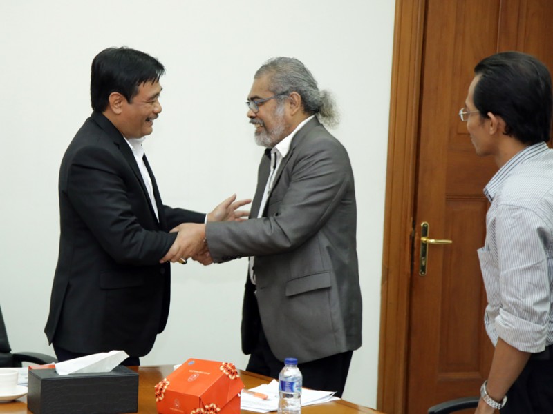Ketua Komisi Nasional Perlindungan Anak, Arist Merdeka Sirait menemui Wakil Gubernur DKI Jakarta, Djarot Saiful Hidayat di Balai Kota DKI Jakarta, Senin (30/11/2015). Dalam pertemuan ini dilakukan pembahasan terkait penanganan terhadap anak yang berhadapan dengan kasus huhum. (Foto : Reza/Beritajakarta.com)