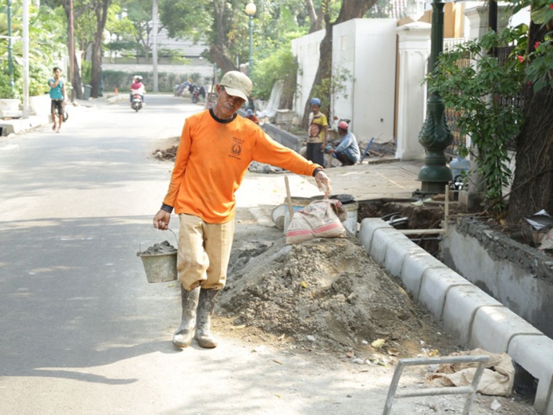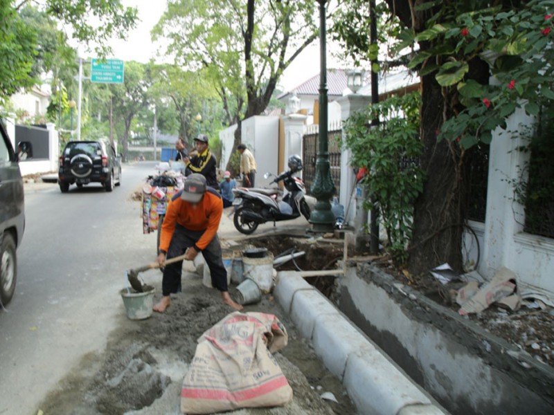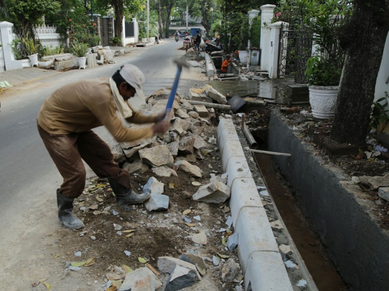 Pihak Suku Dinas Tata Air Jakarta Pusat merefungsi dan menormalisasi saluran air di Jalan Cendana, Menteng, Jakarta Pusat, Senin (30/11/2015). Upaya ini dilakukan untuk mencegah terjadinya genangan maupun banjir, terlebih saat ini sudah memasuki musim hujan.(Foto : Reza/Beritajakarta.com)