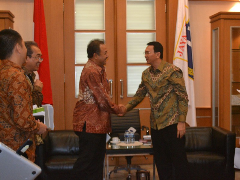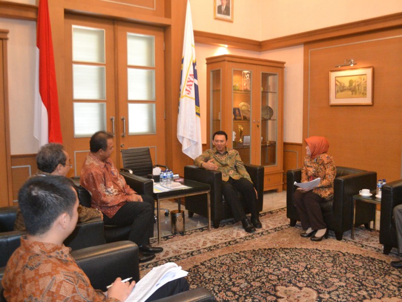 Deputi Bidang Koordinasi Percepatan Infrastruktur dan Pengembangan Wilayah Kementerian Koordinator Bidang Perekonomian Republik Indonesia, Luky Eko Wuryanto berserta jajaran menemui Gubernur DKI Jakarta, Basuki Tjahaja Purnama di Balai Kota DKI Jakarta, Selasa (1/12/2015). Dalam kesempatan tersebut dilakukan pembahasan terkait rencana Rapat Koordinasi (Rakor) Tingkat Menteri dan Gubernur tentang Skenario Pendanaan Sistem Pengelolaan Air Limbah Zona 1. (Foto : Yopie/Beritajakarta.com)