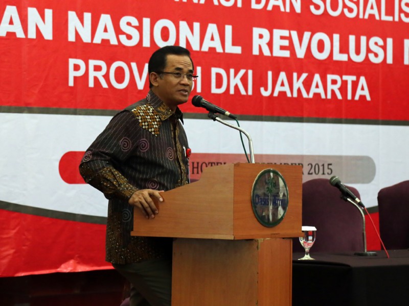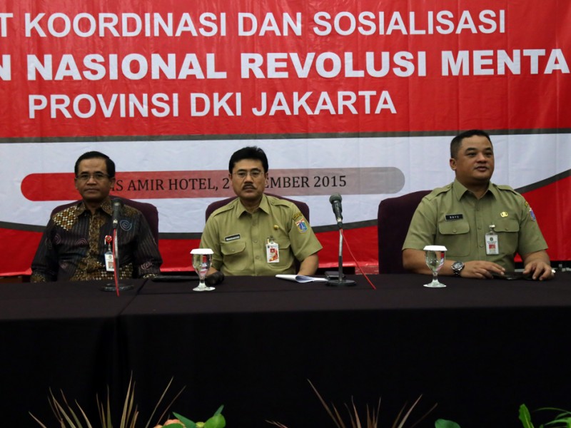 Asisten Bidang Pemerintahan Sekretaris Daerah Provinsi DKI Jakarta, Bambang Sugiyono membuka sosialisasi Gerakan Nasional Revolusi Mental di salah satu hotel di kawasan Jakarta Pusat, Rabu (2/12/2015). Dalam kesempatan tersebut Bambang menyampaikan, melalui pola Pelayanan Terpadu Satu Pintu (PTSP) Provinsi DKI Jakarta akan menjadi pilot project. (Reza /Beritajakarta.com)