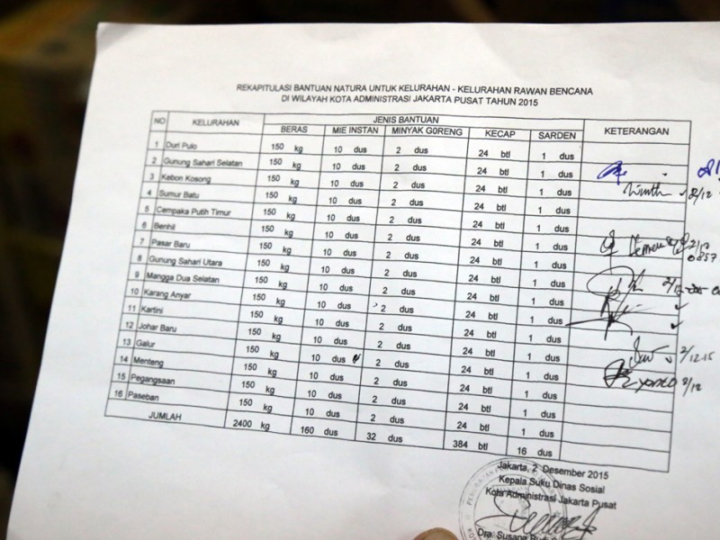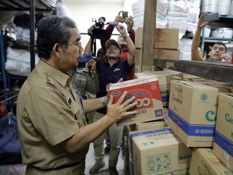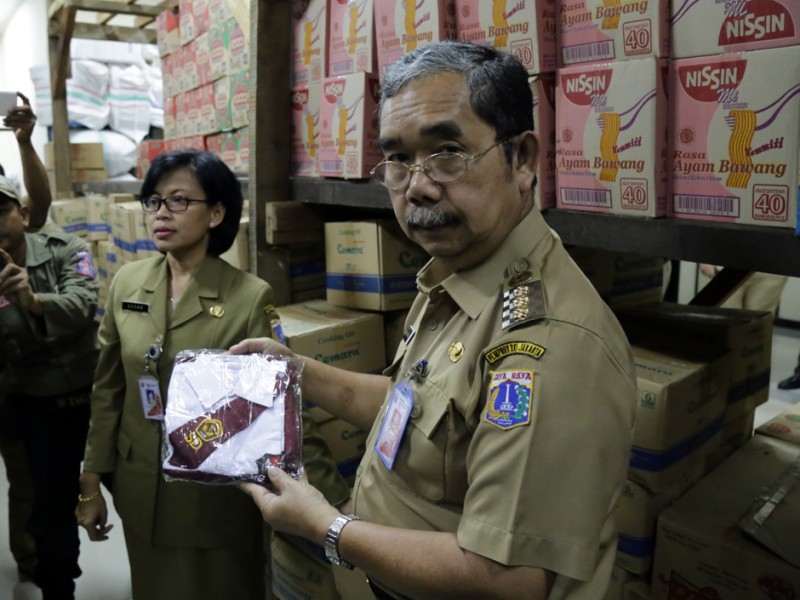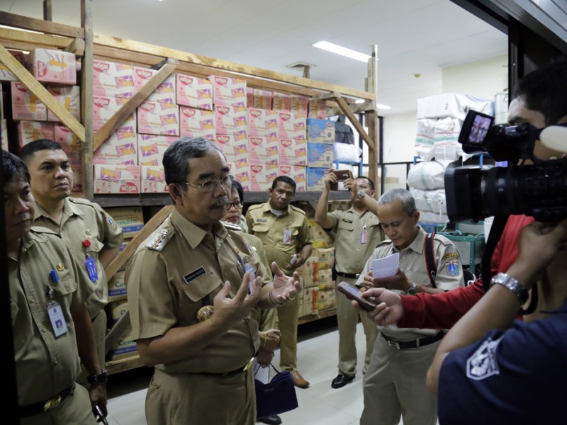 Wali Kota Jakarta Pusat, Mangara Pardede melakukan inspeksi mendadak (Sidak) kesiapan logistik milik Suku Dinas Sosial Jakarta Pusat yang berada di Blok C, Lantai 1, Kantor Wali Kota Jakarta Pusat, Rabu (2/12/2015). Peninjauan ini dilakukan untuk memastikan kebutuhan logistik untuk korban banjir sudah dipersiapkan dengan baik dan memenuhi standar kualitas serta tidak kadaluarsa. (Reza/Beritajakarta.com)