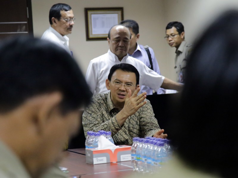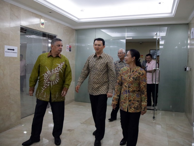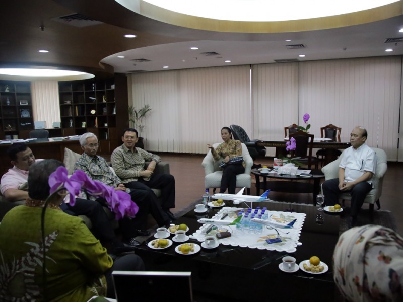 Gubernur DKI Jakarta, Basuki Tjahaja Purnama melakukan rapat dengan Menteri Badan Usaha Milik Negara (BUMN), Rini Soemarno dan Direktur Utama PT PLN, Sofyan Basir di Kantor Kementerian BUMN, Jalan Medan Merdeka Selatan, Gambir, Jakarta Pusat, Rabu (2/12/2015). Dalam rapat tersebut dilakukan pembahsan terkait gardu induk PLN dan Memorandum of Understanding (MoU) penggunaan lampu light emitting diode (LED) untuk seluruh penerangan jalan umum (PJU) di DKI Jakarta. (Yopie/Beritajakarta.com)