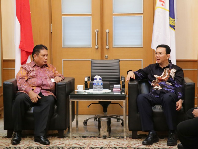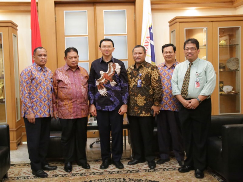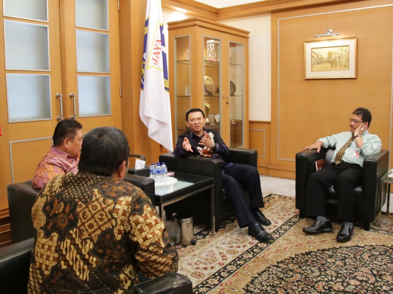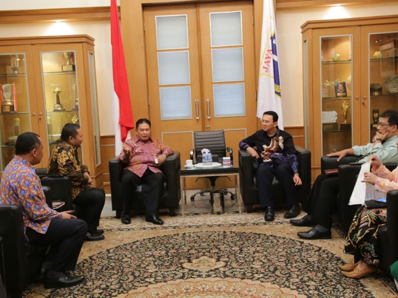 Jajaran Direksi PT Taspen menemui Gubernur DKI Jakarta, Basuki Tjahaja Purnama di Balai Kota DKI Jakarta, Kamis (3/12/2015). Dalam kesempatan tersebut Direksi PT Taspen menyampaikan Peraturan Pemerintah (PP) Nomor 70 Tahun 2015 tentang Jaminan Kecelakaan Kerja (JKK) dan Jaminan Kematian (JKM) bagi pegawai Pemprov DKI Jakarta. Selain itu, PT Taspen juga ingin menjalin kerjasama dengan Rumah Sakit Umum Daerah milik Pemprov DKI Jakarta.(Foto: Yopie/beritajakarta.com)