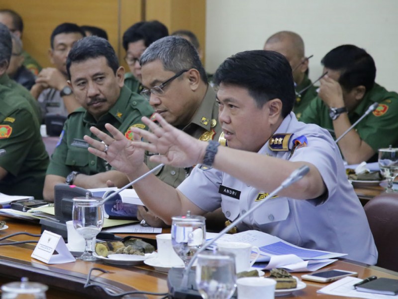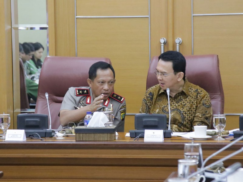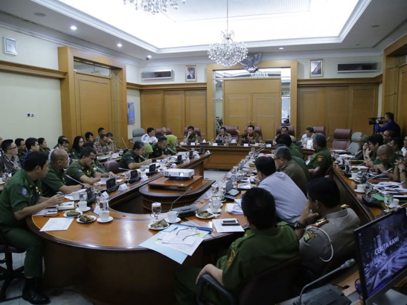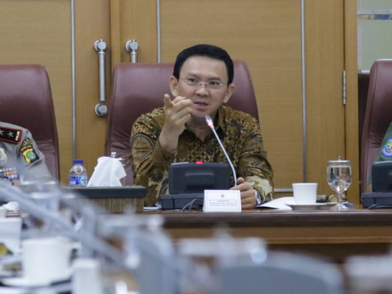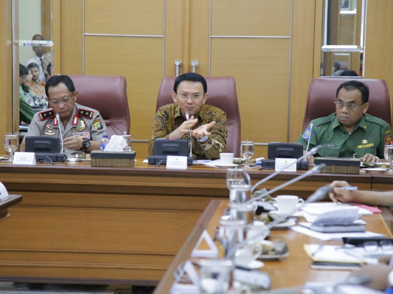 Gubernur DKI Jakarta, Basuki Tjahaja Purnama memimpin rapat rutin bersama jajaran Satuan Kerja Perangkat Daerah (SKPD) di Balai Kota DKI Jakarta, Senin (7/12/2015). Rapim kali ini membahas diantaranya, proses perizinan dan pengoperasian taksi online dan juga persiapan pengamanan menjelang Maulid, Natal dan Tahun Baru. (Yopie/Beritajakarta.com)