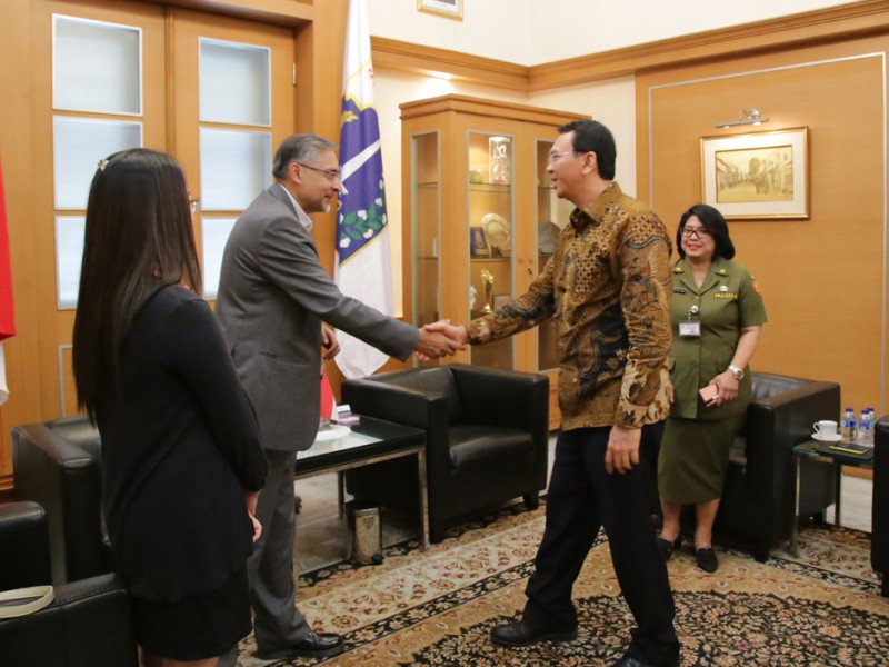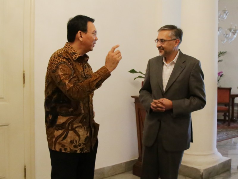 Duta Besar (Dubes) Inggris untuk Indonesia, Moazzam Malik menemui Gubernur DKI Jakarta, Basuki Tjahaja Purnama di Balai Kota DKI Jakarta, Senin (7/12/2015). Dalam pertemuan tersebut dilakukan pembahasan terkait kelanjutan rehab Velodrome Rawamangun untuk arena balap Sepeda Asian Games 2018. (Foto: Yopie/beritajakarta.com)