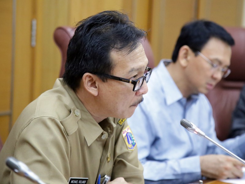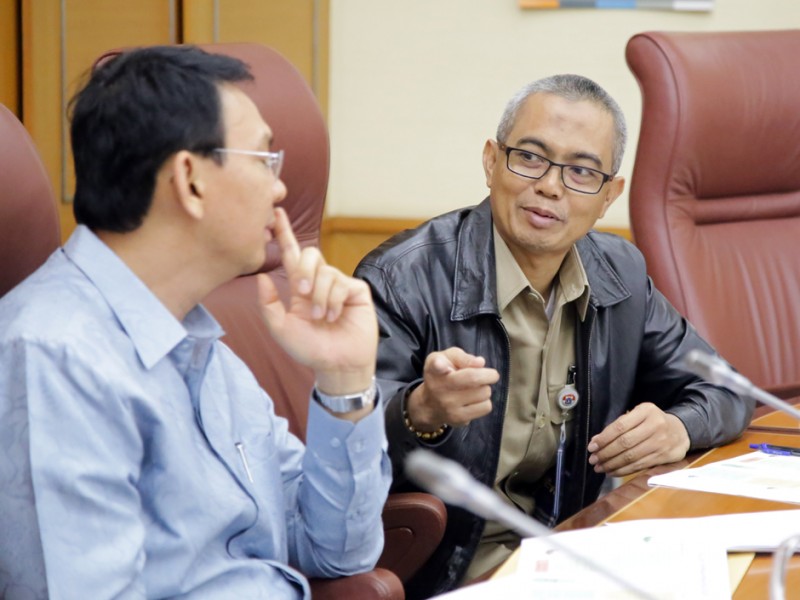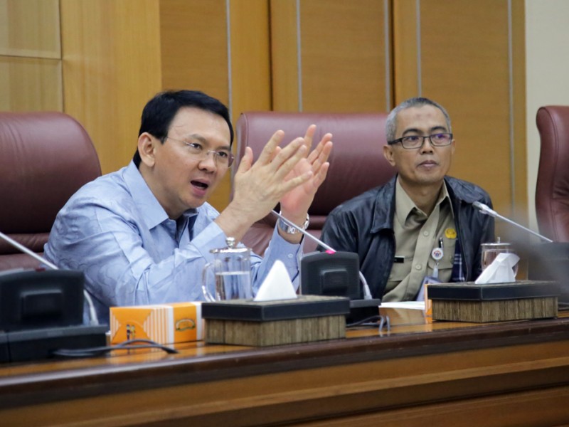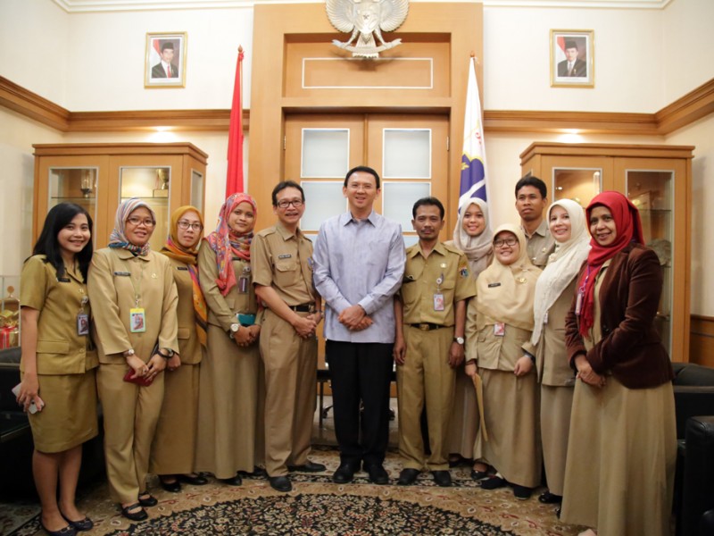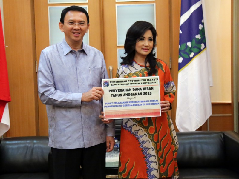 Gubernur DKI Jakarta, Basuki Tjahaja Purnama menerima Wakil Kepala BPKAD Provinsi DKI Jakarta, Michael Rolandi di Balai Kota DKI Jakarta, Selasa (8/12/2015). Dalam kesempatam tersebut Michael menyampaikan paparan Sistem Hibah Bansos Pemprov. DKI Jakarta sekaligus menyerahkan secara simbolis Bansos kepada beberapa perwakilan penerima Bansos. (Foto : Yopie/Beritajakarta.com)