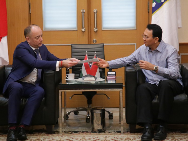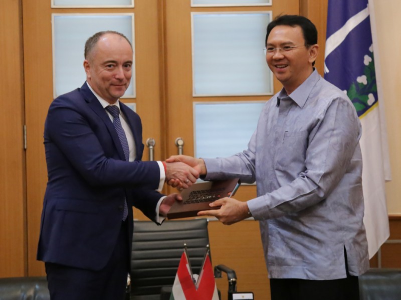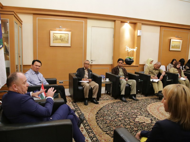 Deputi Menteri Kerjasama Luar Negeri dan Perdagangan (KLNP) Hungaria, Szliveszter Bus menemui Gubernur DKI Jakarta, Basuki Tjahaja Purnama di Balai Kota DKI Jakarta, Selasa (8/12/2015) . Dalam kesempatan tersebut dilakukan pembahasan terkait rencana kerjasama terutama dalam bidang teknologi dan informasi (TI). (Foto: Yopie/beritajakarta.com)