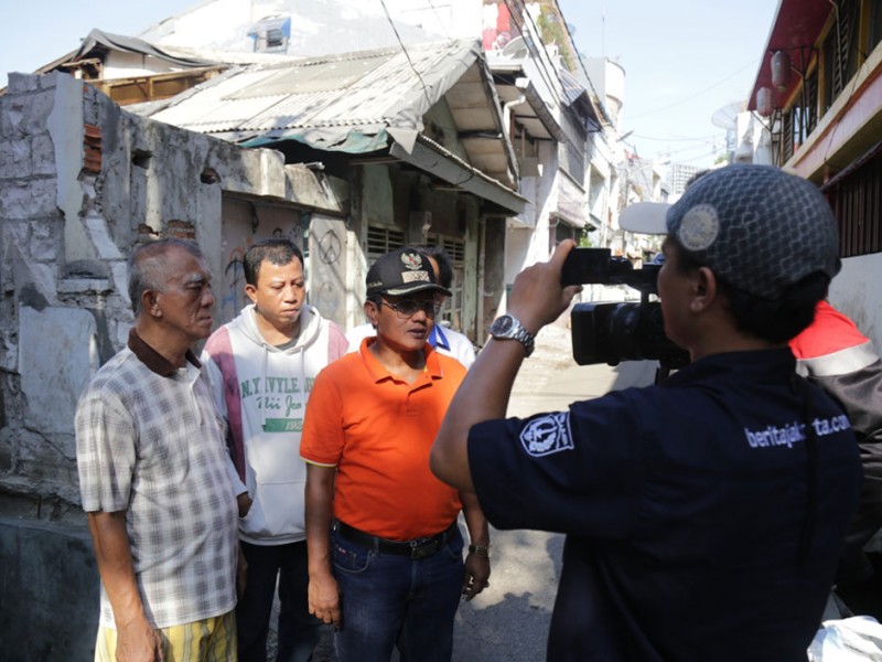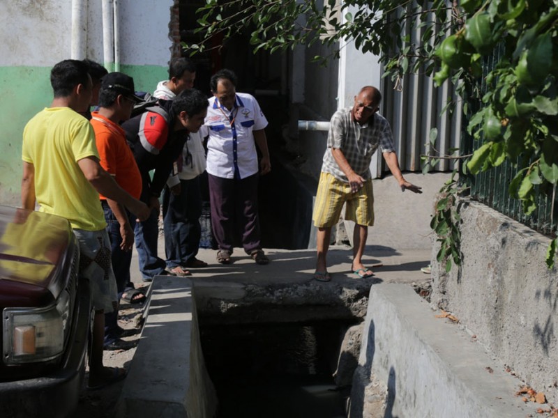 Meski hari libur nasional, Lurah Kartini, Leo Tantino tetap melakukan pemantauan wilayah. Leo melakukan peninjauan saluran penghubung (PHB) Kartini, di Kelurahan Kartini, Kecamatan Sawah Besar, Jakarta Pusat, yang sedang direfungsi dan dinormalisasi, Rabu (9/12/2015). (Foto: Reza / Beritajakarta.com)