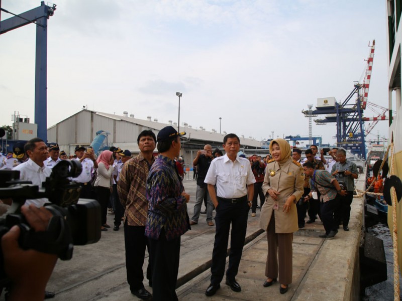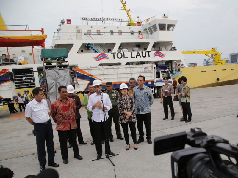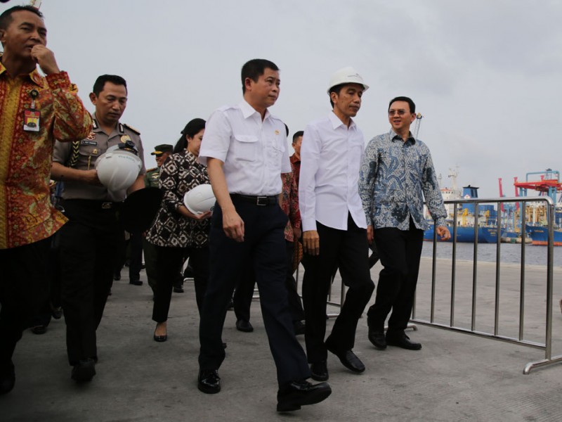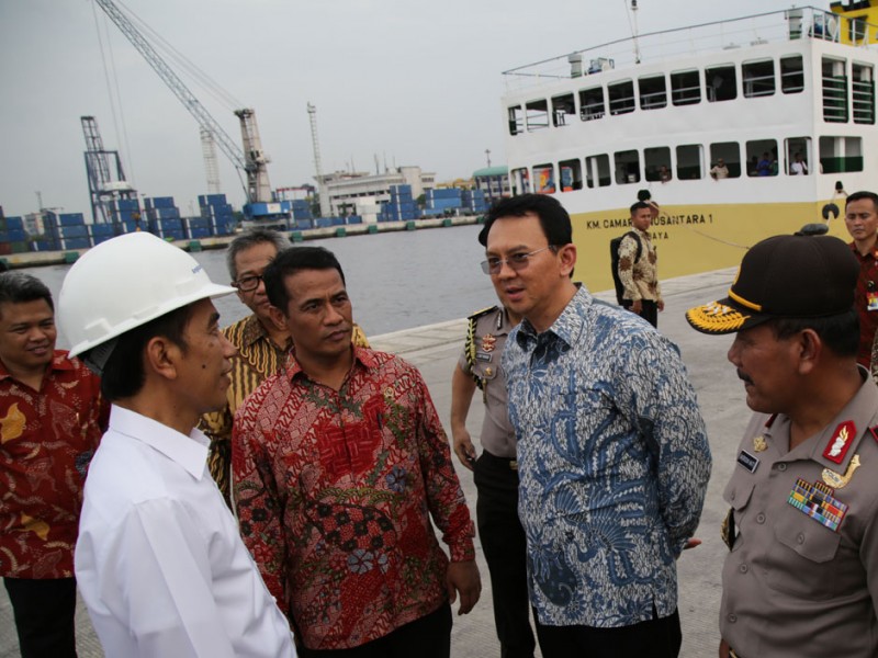 Gubernur DKI Jakarta, Basuki Tjahaja Purnama mendampingi Presiden Republik Indonesia Joko Widodo (Jokowi) menerima kedatangan 350 ekor sapi dari Nusa Tenggara Timur (NTT) yang diangkut menggunakan kapal pengangkut ternak KM Camara Nusantara I di Dermaga 107, Terminal Pelabuhan Tanjung Priok, Jakarta Utara. Hal ini merupakan salah satu wujud kemandirian pangan karena Indonesia diharapkan mampu memenuhi kebutuh an dalam negerinya tanpa perlu import sapi.(Foto: Yopie / Beritajakarta.com)