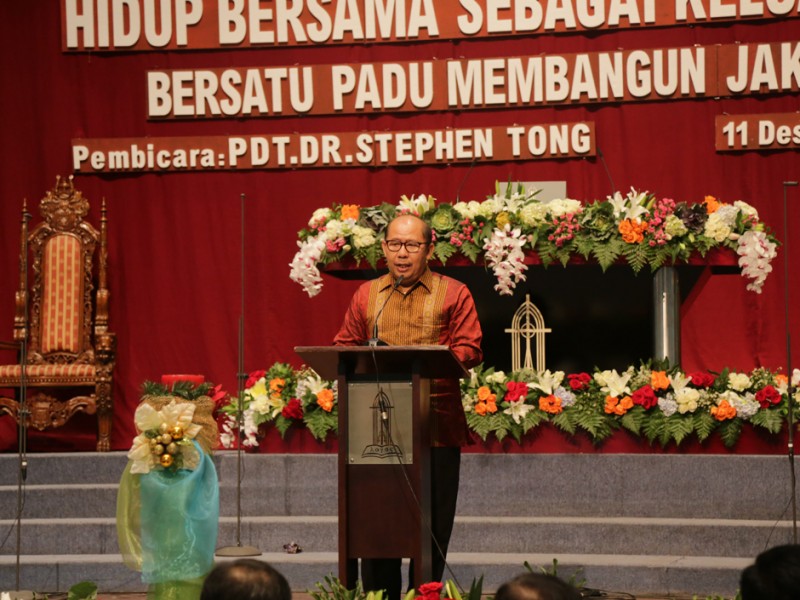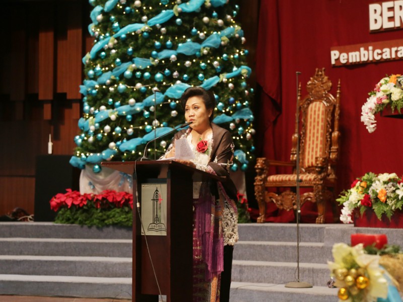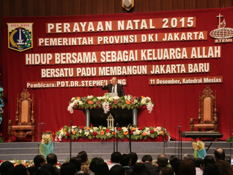 Gubernur DKI Jakarta, Basuki Tjahaja Purnama menghadiri acara Aktualisasi Nilai-Nilai Natal Tahun 2015 di Gedung Katedral Mesias, RMCI, Jalan Industri Blok B, Kemayoran, Jakarta Pusat, Jumat (11/12/2015) malam. Dalam sambutannya Basuki berpesan agar seluruh pegawai Pemprov DKI Jakarta lebih bekerja keras untuk memberikan pelayanan terbaik kepada warga Ibu Kota. (Foto: Reza/beritajakarta.com)