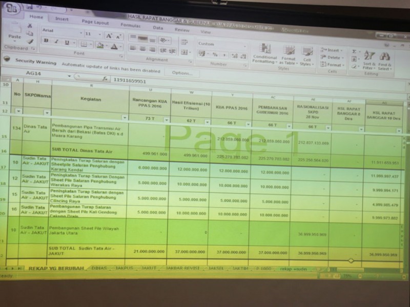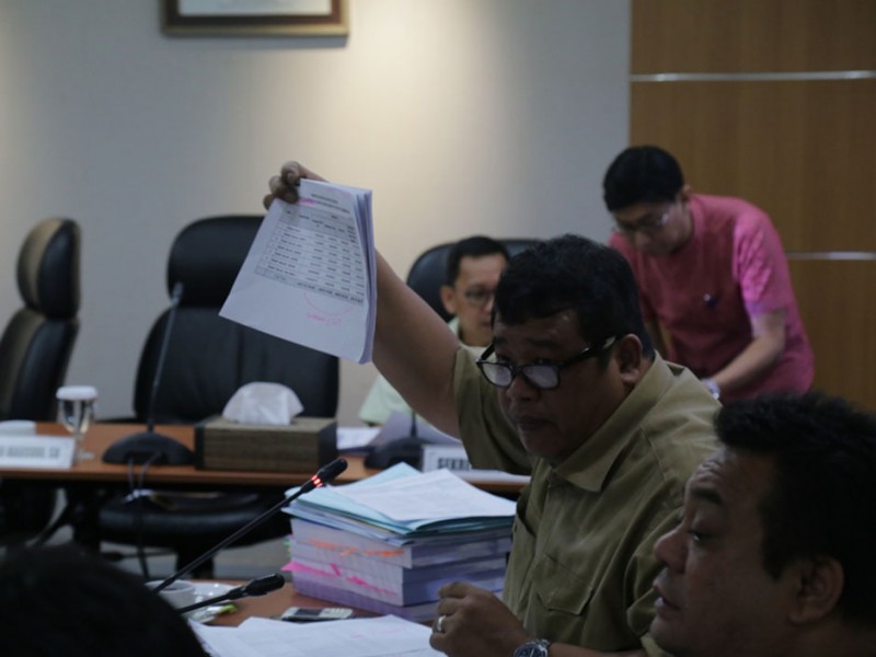 Badan Anggaran (Banggar) DPRD DKI Jakarta memanggil jajaran Dinas Tata Air untuk melakukan pembahasan Kebijakan Umum Anggaran-Prioritas Plafon Anggaran Sementara (KUA-PPAS) di Gedung DPRD DKI Jakarta, Jalan Kebon Sirih, Jakarta Pusat, Sabtu (12/12/2015). Wakil Ketua Banggar DPRD DKI Jakarta, Mohamad Taufik meminta kepada Kepala Dinas Tata Air DKI Jakarta, Teguh Hendrawan, untuk mengembalikan kegiatan yang digabung seperti semula.(Foto: Reza/beritajakarta.com)