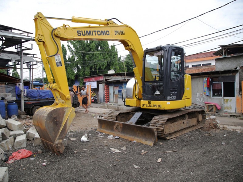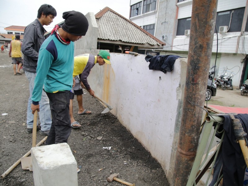 Pemerintah Kota Administrasi Jakarta Selatan membangun jalan tembus menuju Lokasi Binaan (Lokbin) di Jalan Rajawali, RT 02/02, Kelurahan Pasar Minggu, Jakarta Selatan. Jalan tembus ini sebagai akses warga menuju lokbin. Sebelumya pedagang Lokbin mengeluhkan sepinya aktivitas lokbin lantaran akses menuju Lokbin tidak memadai. (Foto : Yopie/Beritajakarta.com)